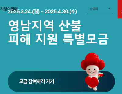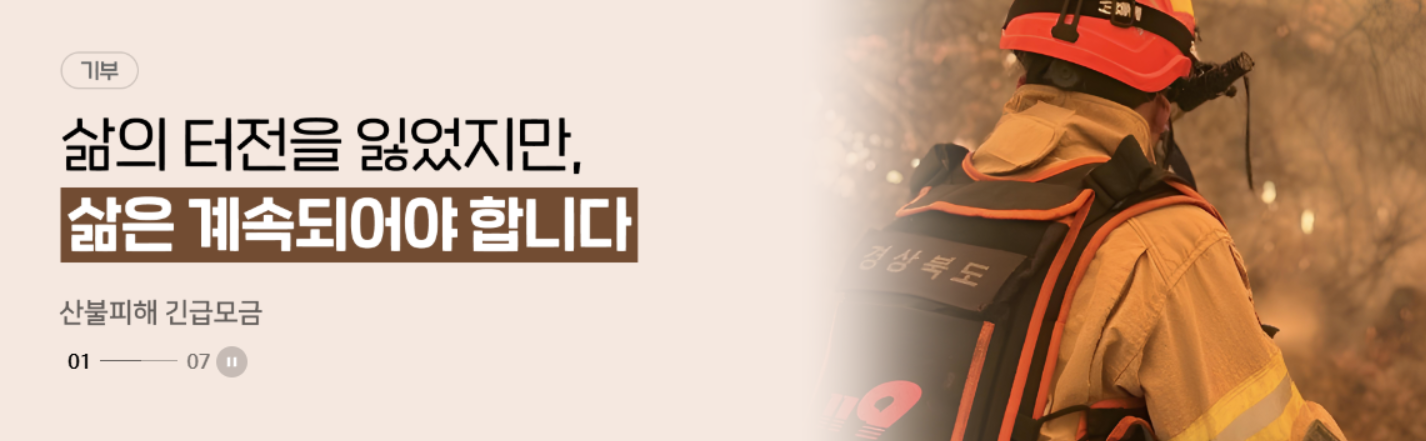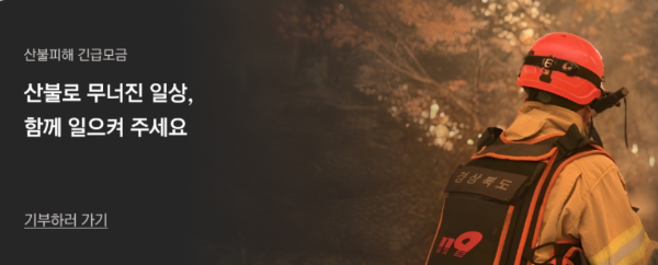 • 메인 페이지에서 ‘산불 피해 긴급구호’ 모금함 클릭